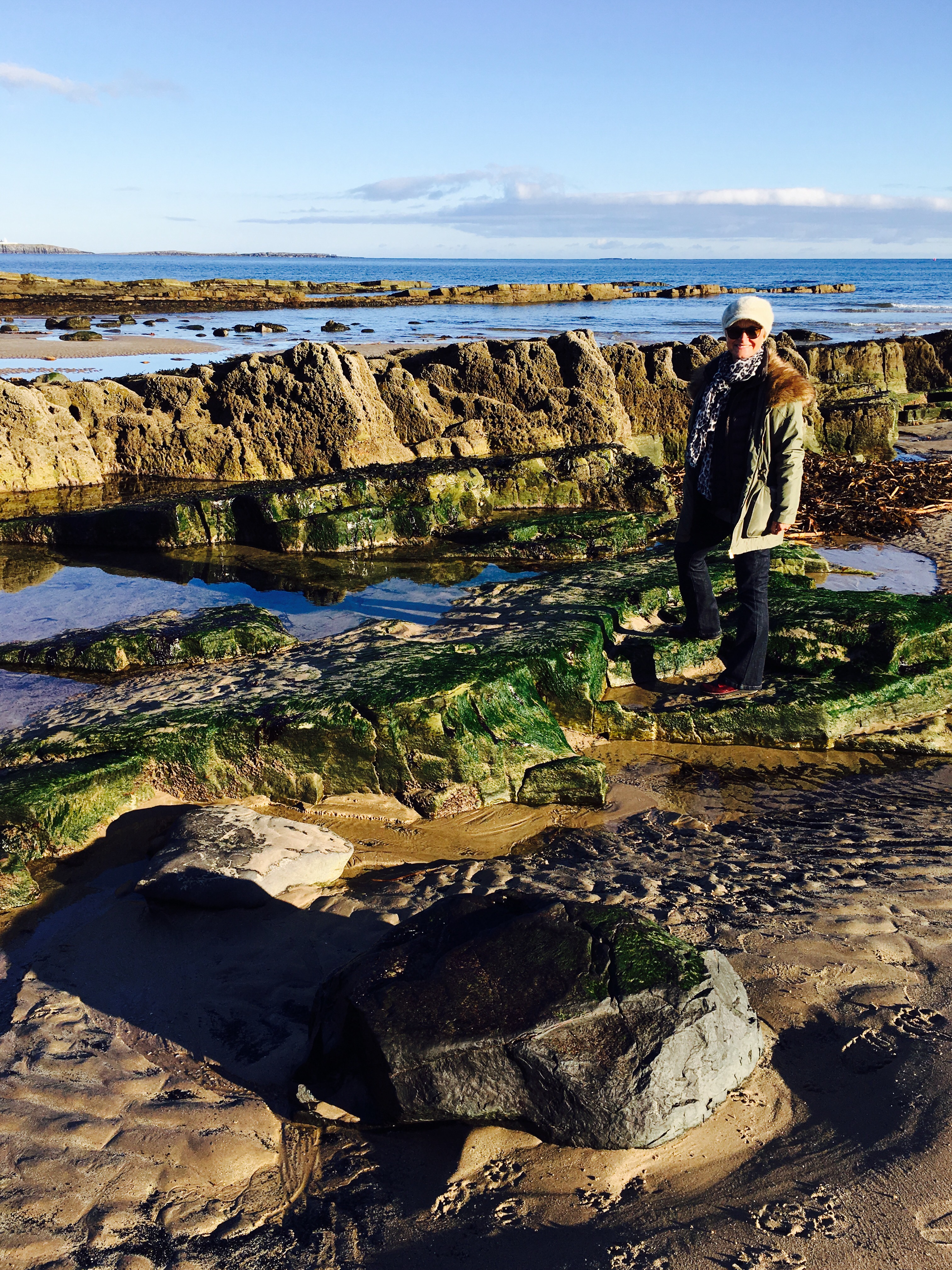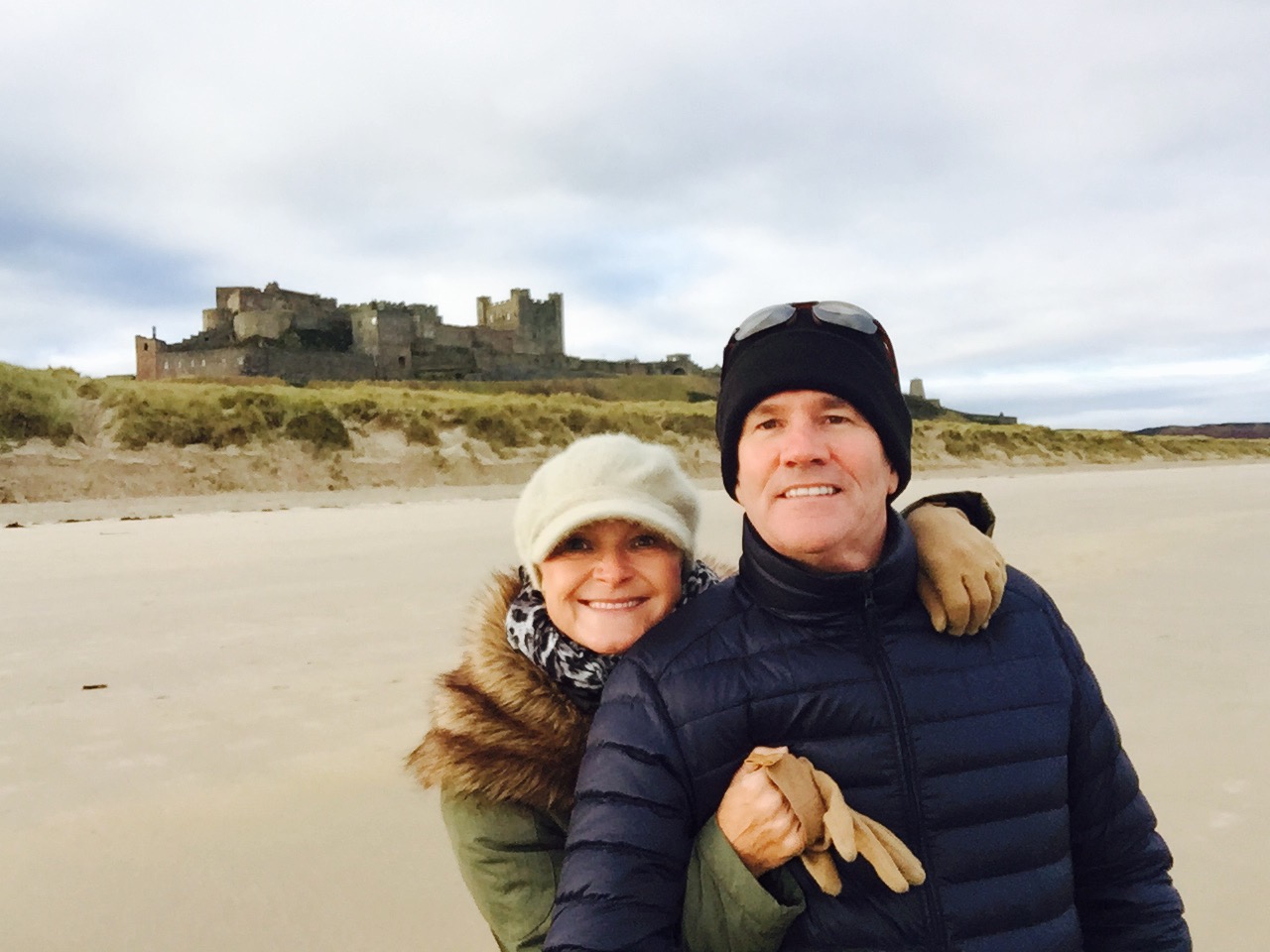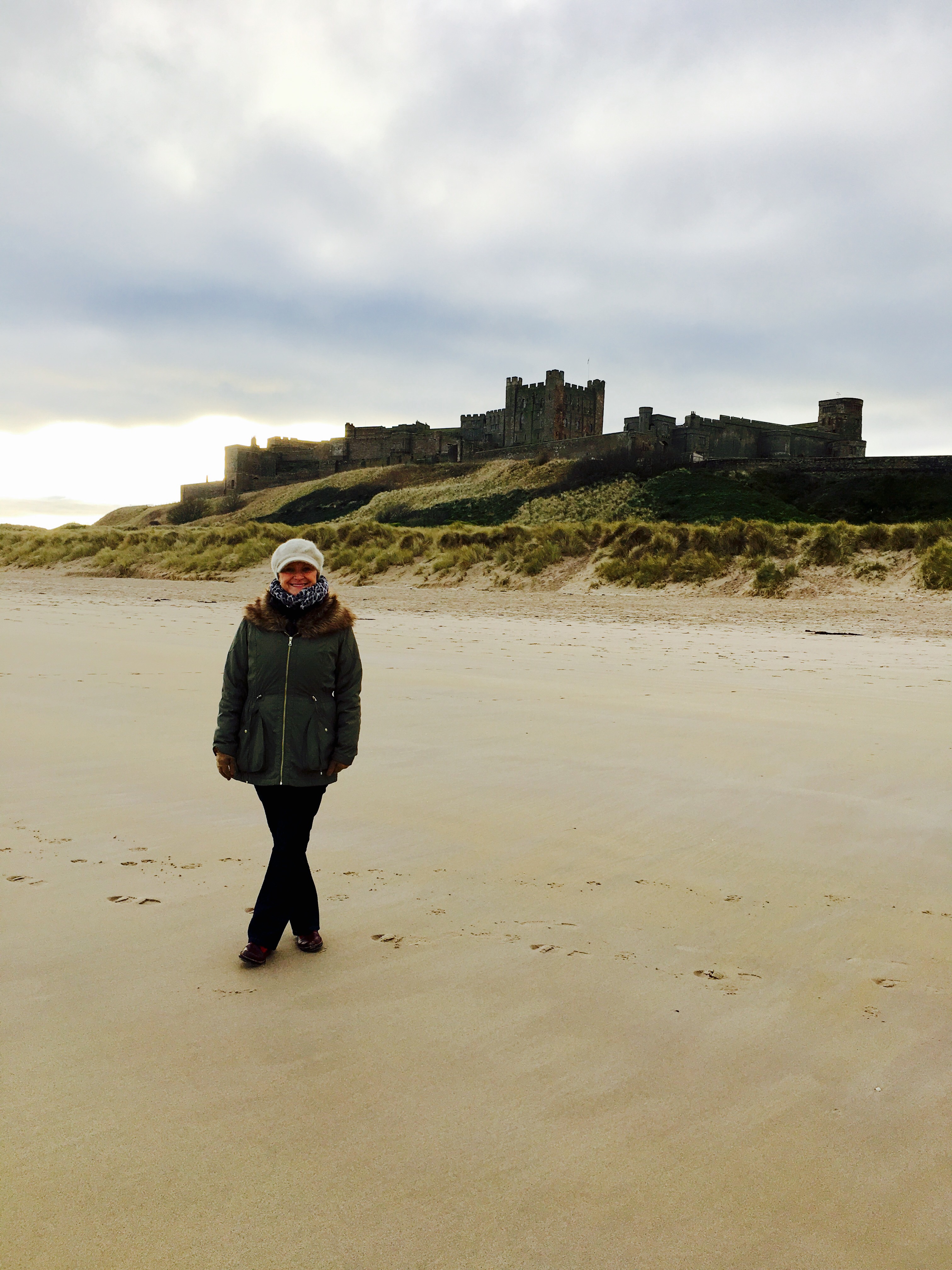 Dad Powell is not too well at the moment and is waiting for news to have a hip replacement, it’s been a long and painful 2 years for him waiting for some relief. The pins that were removed haven’t been as successful as hoped so he has not been able to drive, so he insisted we use his car while we’re in Newcastle. Headed north one day to Bamburgh village which has a lovely castle ( visited there last May ) but didn’t get to walk on the beach. This time we did and it was just gorgeous, cold but a lovely sunny crisp day, perfect for the 2 hour return walk.