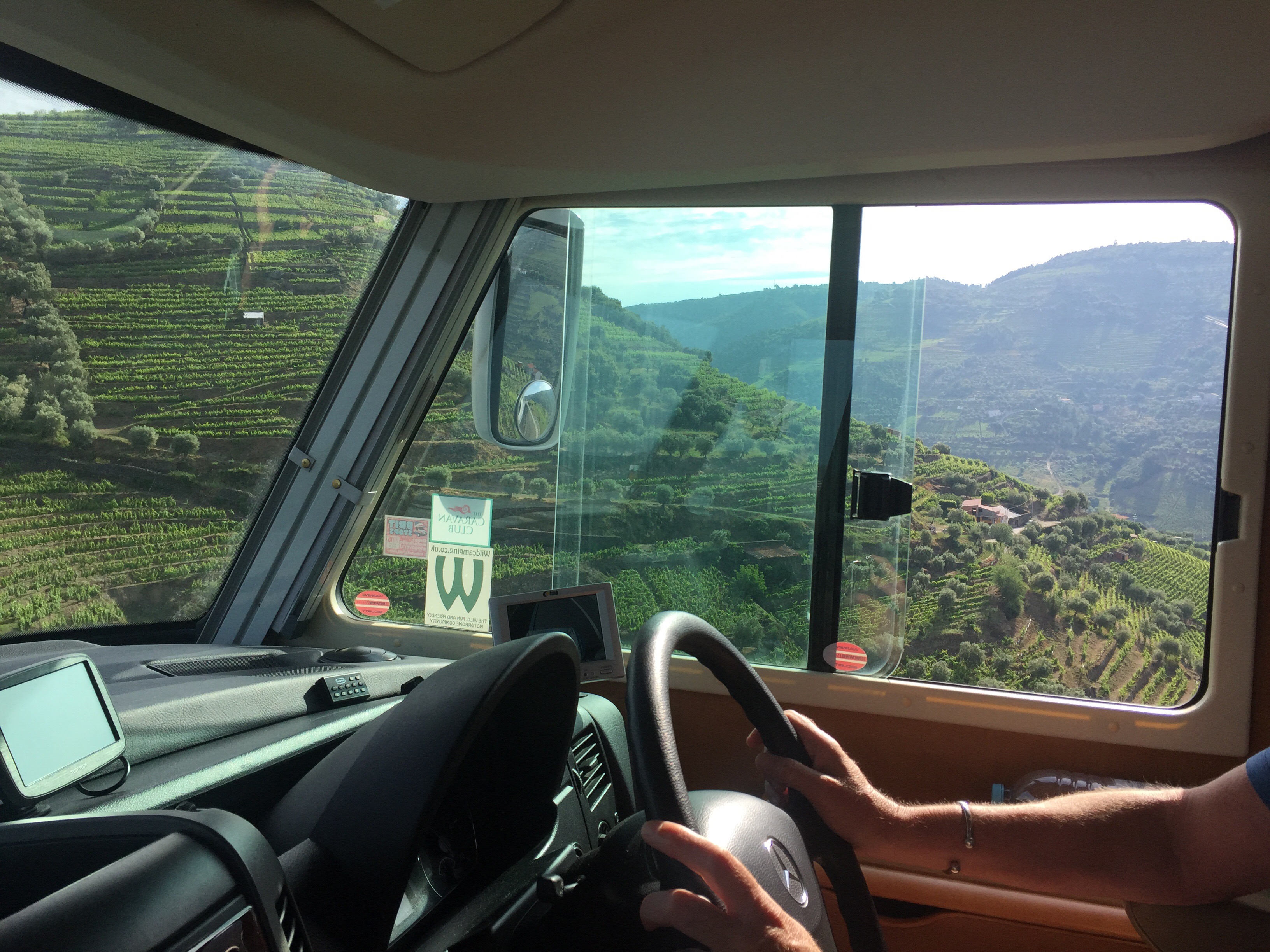 A beautiful sunny morning, so we hit the road at 8 am with a very loose plan to head north towards France. We’d agreed to try and make Bilbao in Spain if all went well. The climb out of the Douro Valley was spectacular , affording magnificent views over Wine vineyards carved precariously into The hillside like rice terraces. The farmers must have a hell of a job working these fields. The first few hours driving just slipped by as we enjoyed the views so much. Poor old Pinot got a bit of a workout traversing these hills. We eventually reached 2000 metres before the roads flattened somewhat. I try to sit on around 95k per hour at about 2.300 rpm and she hums along nicely at that.